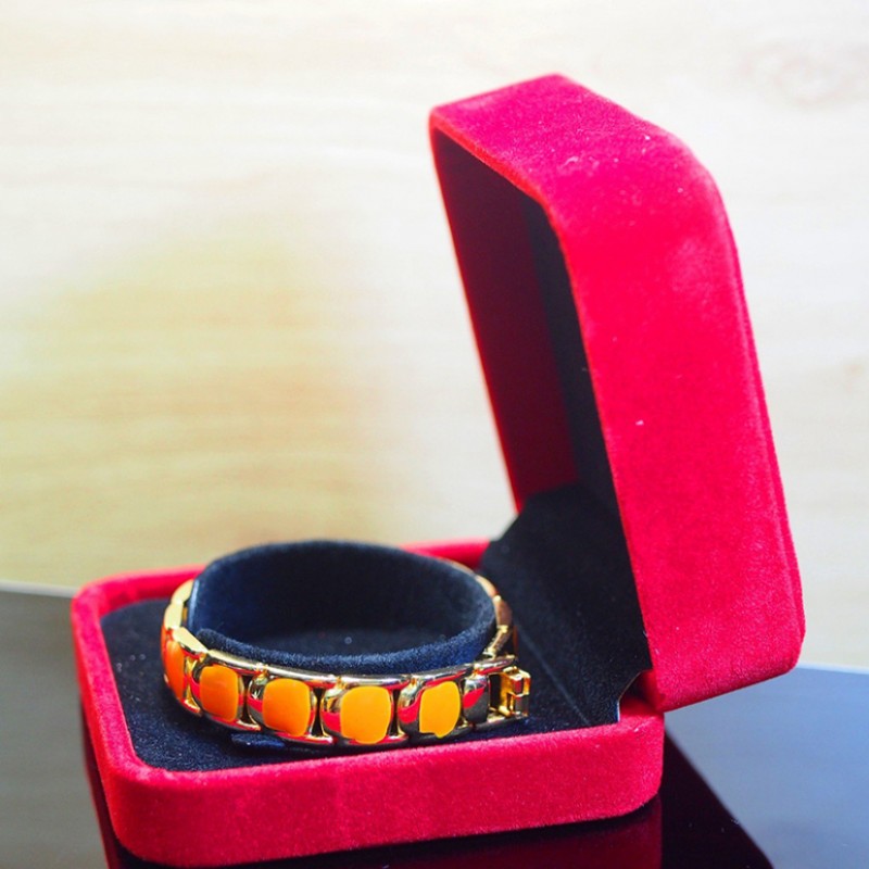 Bên ngoài vòng huyết áp Healgems được mạ vàng 24k giúp cho vòng bền màu hơn, sáng bóng, sang trọng và vô cùng đẳng cấp.