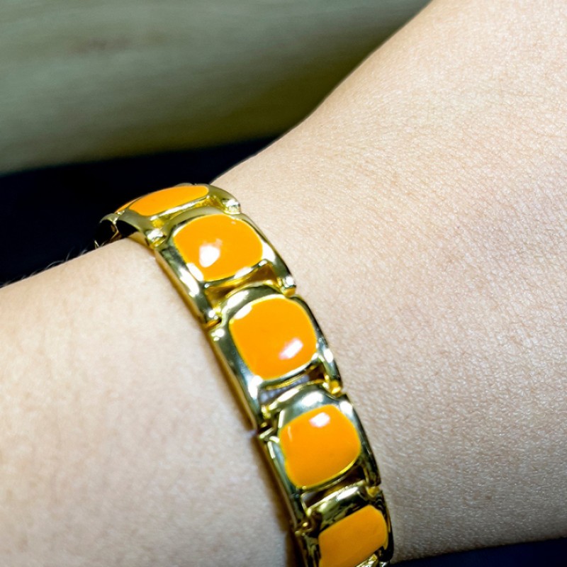 Mặt ngoài của vòng được trang trí bằng đá Citrine, một loại đá có tác dụng chữa lành, thu hút nguồn năng lượng tích cực, đem lại tài lộc và may mắn
